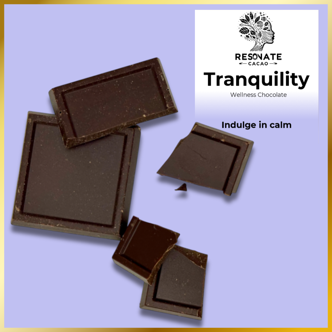 Our Tranquility Chocolate combines antioxidant-rich cacao with the gentle, natural support of Theobromine, creating a soothing foundation for emotional balance. Each square is thoughtfully formulated with: